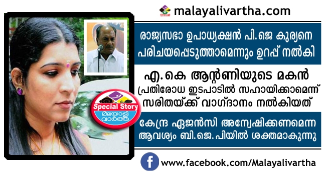 എ.കെ ആന്റണിയുടെ മകന് പ്രതിരോധ ഇടപാടില് സഹായിക്കാമെന്ന് സരിതയ്ക്ക് വാഗ്ദാനം നല്കിയത് കേന്ദ്ര ഏജന്സി അന്വേഷിക്കണമെന്ന ആവശ്യം ബി.ജെ.പിയില് ശക്തമാകുന്നു