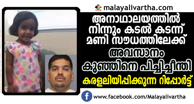 ടെക്സാസിലെ റിച്ചാര്ഡ്സണില് കാണാതായ മൂന്നു വയസുകാരി പെണ്കുട്ടിയെ വളര്ത്തച്ഛന് കൊന്നു കളഞ്ഞതാകാമെന്ന നിഗമനത്തില് അമേരിക്കന് അന്വേഷണ ഏജന്സി എഫ്ബിഐ. കുട്ടിയെ കാണാതായെന്നു പറയുന്ന സമയത്ത് വീട്ടിലെ ഒരുവാഹനം പുറത്തുപോയി മടങ്ങിവന്നുവെന്ന നിര്ണായക തെളിവ് അന്വേഷണ സംഘത്തിന് ലഭിച്ചിട്ടുണ്ട്. അയല്വീടുകളിലെ സിസിടിവി ദൃശ്യങ്ങള് അന്വേഷണ സംഘം ആവശ്യപ്പെട്ടിരുന്നു. ഈ ദൃശ്യപരിശോധനയിലാണ് തെളിവ് കിട്ടിയത്. ഇതോടെ 1.6 കോടിയുടെ ജാമ്യത്തില് വിട്ടയച്ച വളര്ത്തച്ഛന് വെസ്ലി മാത്യു (37) കൊലക്കേസില് പ്രതിയാകുമെന്ന സൂചനയാണ് പോലീസ് നല്കുന്നത്.