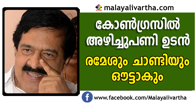 കോണ്ഗ്രസില് വന് അഴിച്ചുപണി വരുന്നു. വേങ്ങരയില് യു ഡി എഫിന് ലഭിക്കേണ്ടിയിരുന്ന പതിനായിരക്കണക്കിന് വോട്ടുകള് നഷ്ടപ്പെട്ട പശ്ചാത്തലത്തില് പ്രതിപക്ഷ നേതാവ് സ്ഥാനത്തുള്ള രമേശ് ചെന്നിത്തലയുടെ പ്രകടനം മോശമാണെന്ന വിലയിരുത്തലിലാണ് ഹൈക്കമാന്റ്.