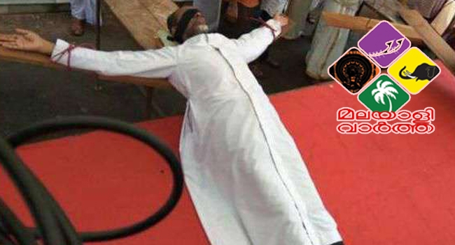 ഹര്ത്താലുകള്ക്കെതിരെ മുക്കാലിയില് കൈകാലുകള് ബന്ധിച്ച് പുരോഹിതന്റെ പ്രതിഷേധം