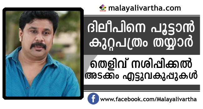 നടി ആക്രമിക്കപ്പെട്ടിട്ട് എട്ടുമാസങ്ങള് പിന്നിടുമ്പോൾ കേസിലെ ഗൂഢാലോചനക്കുറ്റത്തിന് അറസ്റ്റിലായ നടന് ദിലീപിനെതിരെയുളള കുറ്റപത്രം തയ്യാര്. കൂട്ട മാനഭംഗം, ഗൂഢാലോചന, തട്ടിക്കൊണ്ടുപോകല്, തെളിവ് നശിപ്പിക്കല്, പ്രതിയെ സംരക്ഷിക്കല്, തൊണ്ടി മുതല് സൂക്ഷിക്കല്, ഭീഷണി, അന്യായമായി തടങ്കലില് വെയ്ക്കല് എന്നീ വകുപ്പുകളാണ് ദിലീപിനെതിരെ ചുമത്തുന്നത്. കുറ്റപത്രത്തിനൊപ്പം നല്കാന് നേരിട്ടുളള തെളിവുകളുടെയും സാഹചര്യ തെളിവുകളുടെയും അനുബന്ധ റിപ്പോര്ട്ടും പൊലീസ് തയ്യാറാക്കി.