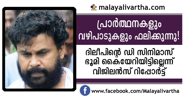ഡി സിനിമാസ് ഭൂമി കൈയേറിയിട്ടില്ലെന്ന് വിജിലൻസ് റിപ്പോർട്ട്