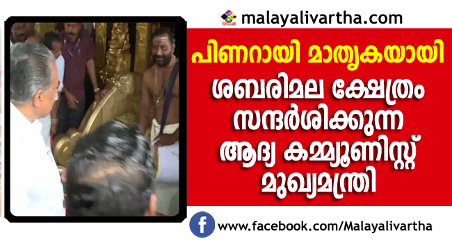 മാളികപ്പുറത്ത് നിന്നും വാവര് നടയില് നിന്നും പിണറായി പ്രസാദം സ്വീകരിച്ചു. ശബരിമല ക്ഷേത്ര സന്ദര്ശനം നടത്തുന്ന ആദ്യ കമ്മ്യൂണിസ്റ്റ് മുഖ്യമന്ത്രിയാണ് പിണറായി വിജയന്.
