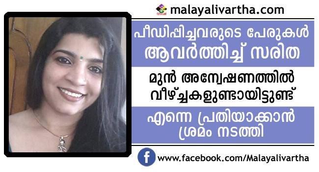 മുന് അന്വേഷണത്തില് വീഴ്ചകളുണ്ടായിട്ടുണ്ട്, തന്നെ പ്രതിയാക്കാന് കരുതിക്കൂട്ടി ശ്രമം നടന്നിരുന്നുവെന്ന് സരിത