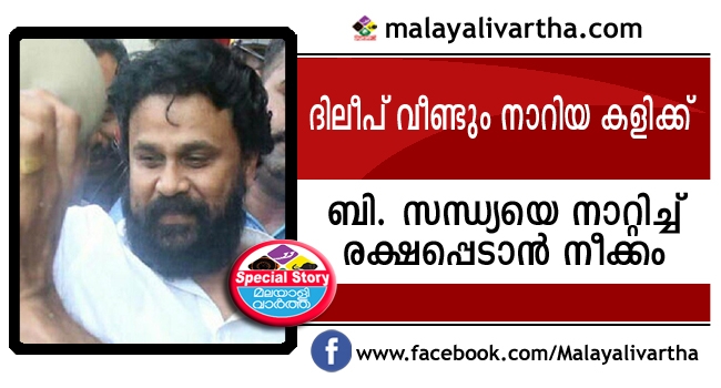 യുവനടിയെ പീഡിപ്പിച്ച കേസിൽ ഗൂഢാലോചനാകുറ്റത്തിന് ദിലീപ് ഒന്നാം പ്രതിയാകാനിരിക്കെ അന്വേഷണ ഉദ്യോഗസ്ഥയായ ബി.സന്ധ്യക്കെതിരെ കോടതിയെ സമീപിക്കാൻ താരവും ശിങ്കിടിമാരും ആലോചിക്കുന്നു. സന്ധ്യക്കെതിരെ നീക്കങ്ങൾ ശക്തമാക്കി കോടതിയിൽ നിന്ന് രക്ഷപ്പെടാനാണ് ദിലീപ് ശ്രമിക്കുന്നത്.
