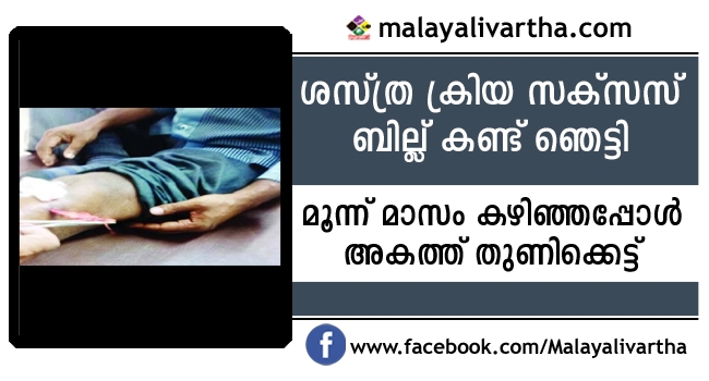 സ്വകാര്യ ആശുപത്രിയില് നടത്തിയ ശസ്ത്രക്രിയക്കിടയിൽ ഉണ്ടായ അശ്രദ്ധ; ഗൃഹനാഥന് വേദന തിന്നതു മൂന്നുമാസം