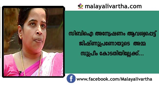 ജിഷ്ണുപ്രണോയ് കേസിൽ സിബിഐ അന്വേഷണം ആവശ്യപ്പെട്ട് മഹിജ നാളെ സുപ്രീം കോടതിയെ സമീപിക്കും