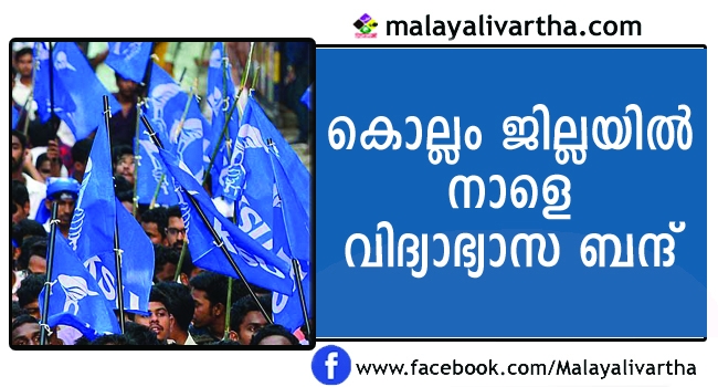 വിദ്യാർത്ഥിനി കെട്ടിടത്തിൽ നിന്ന് ചാടി മരിച്ച സംഭവത്തിൽ പ്രതിഷേധിച്ച് കൊല്ലം ജില്ലയിൽ നാളെ വിദ്യാഭ്യാസ ബന്ദ്