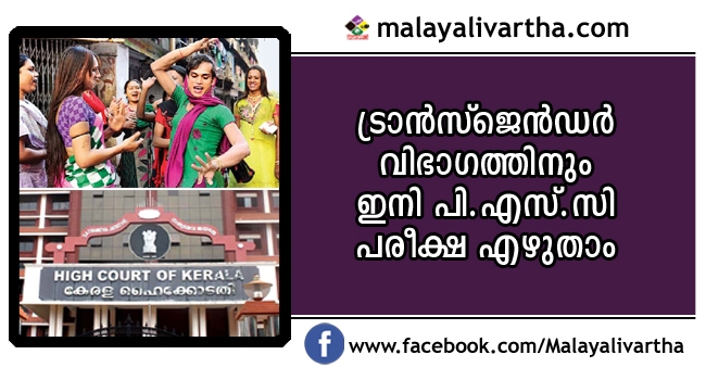ട്രാന്സ്ജെന്ഡര് വിഭാത്തെയുംപി.എസ്.സി പരീക്ഷ എഴുതിക്കണമെന്ന് ഹൈക്കോടതിയുടെ ഇടക്കാല ഉത്തരവ്