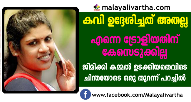 ജിമിക്കി കമ്മലിനെ കുറിച്ച് അഭിപ്രായം പറഞ്ഞ യുവജന കമ്മീഷന് ചെയ്ര്പേഴ്സണ് ചിന്ത ജെറോം ട്രോളിന്റെ ശക്തിയറിഞ്ഞ് നിലപാട് മാറ്റി. ഒരു ഓണ്ലൈന് മാധ്യമത്തിലൂടെയായിരുന്നു ഈ പ്രതികരണം.