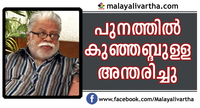 സാഹിത്യകാരന് പുനത്തില് കുഞ്ഞബ്ദുള്ള അന്തരിച്ചു. 75 വയസായിരുന്നു. കോഴിക്കോട് സ്വകാര്യ ആശുപത്രിയില് ഇന്ന് രാവിലെ 7.40നായിരുന്നു അന്ത്യം. വാര്ധക്യസഹജമായ അസുഖങ്ങള് തുടര്ന്ന് കുറച്ച് ദിവസങ്ങളായി ആശുപത്രിയിലായിരുന്നു.
