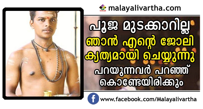 പൂജാ കാര്യങ്ങളില് വീഴ്ച വരുത്തിയെന്നും പൂജ മുടങ്ങിയെന്നുമൊക്കെയുള്ള ആക്ഷേപങ്ങള് വസ്തുതാവിരുദ്ധമാണ്. ഒക്ടോബര് 26 ാം തിയ്യതി പറവൂരില് പോകേണ്ടതിനാല് ലീവ് എടുതിക്കൊടുത്തിരുന്നു. പൂജ മുടങ്ങാതിരിക്കാന് പകരം ഒരാളെ ഏര്പ്പാടാക്കുകയും ചെയ്തു. അദ്ദേഹത്തിന്റെ അച്ഛന് അപകടത്തില്പ്പെട്ടതിനാല് പൂജയ്ക്ക് എത്താന് കഴിയില്ലെന്ന് വൈകുന്നേരം അഞ്ചുമണിയോടെ എന്നെ അറിയിച്ചിരുന്നു.