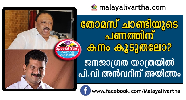 കൊടുവള്ളിയിലെ സ്വീകരണ യോഗത്തില് സ്വര്ണക്കള്ളക്കടത്ത് കേസിലെ പ്രതി കാരാട്ട് ഫൈസലിന്റെ വാഹനത്തില് വടക്കമേഖല ജാഥ നായകന് കോടിയേരി ബാലകൃഷ്ണന് കയറിയത് വിവാദമായ സഹാചര്യത്തിലാണ് കളങ്കിതരെ ജനജാഗ്രതയാത്രയുടെ നിന്നും മാറ്റി നിര്ത്താന് മുന്നണി തലത്തില് അനൗദ്യോഗിക തീരുമാനമുണ്ടായത്. ഇതിന്റെ അടിസ്ഥാനത്തിലാണ് മലപ്പുറം നിലമ്പൂരിലെ സ്വീകരണ യോഗത്തില് നിന്നും സ്ഥലം എംഎല്എയായ പി. വി അന്വറിനെ ഒഴിവാക്കിയത്. എന്നാല് കായല് കയ്യേറ്റം, നിലംനികത്ത് ഉള്പ്പെടെയുള്ള ആരോപണങ്ങള് നേരിടുന്ന തോമസ് ചാണ്ടിയെ കുട്ടനാട്ടിലെ സ്വീകരണ യോഗത്തില് നിന്നും മാറ്റി നിര്ത്തുമെന്നായിരുന്നു പൊതുവെ കരുതിയിരുന്നത്. എന്നാല് ചാണ്ടിയുടെ പണക്കിലുക്കത്തിന് മുന്നില് മുന്നണി മുട്ടുമടക്കി.