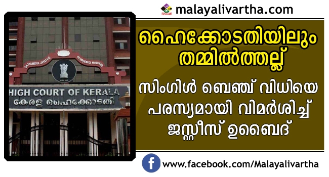 രാജീവ് വധവുമായി ബന്ധപ്പെട്ട കേസിലെ സിംഗിൾ ബെഞ്ച് വിധിക്കെതിരേ ജസ്റ്റീസ് പി.ഉബൈദ് രംഗത്ത് ;തുറന്ന കോടതിൽ തനിക്കെതിരേയുള്ള പരാതിന്മേൽ ന്യായാധിപന്റെ പ്രധിഷേധം