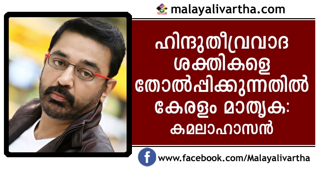 ഹിന്ദു തീവ്രവാദ സംഘടനകളെ ചെറുത്ത് തോല്പ്പിക്കുന്നതില് കേരളം മാതൃകയാണെന്ന് നടന് മകല്ഹാസന്. തമിഴ് മാസികയായ ആനന്ദവിടകനില് എഴുതുന്ന പ്രതിവാര പംക്തിയിലാണ് ഇക്കാര്യം വ്യക്തമാക്കിയത്. ഹിന്ദു തീവ്രവാദം ഉണ്ടോ എന്ന ചോദ്യത്തിന് ഹിന്ദുത്വശക്തികള് തന്നെ മറുപടി നല്കിയിരിക്കുകയാണ്. നടന്മാരെ ജാതിയും മതവും പറഞ്ഞ് അധിഷേപിക്കുന്നതിലൂടെ എന്ത് മാത്രം വിഷമാണ് അവര് പ്രചരിപ്പിക്കുന്നതെന്ന് മനസിലാകും. മെര്സലില് ജി.എസ്.ടിയെ കുറിച്ചുള്ള സംഭാഷണത്തെ തുടര്ന്ന് നടന് വിജയിക്കെതിരെ ജാതി പറഞ്ഞ് രംഗത്തെത്തിയ ബി.ജെ.പി നേതാവ് എച്ച്. രാജയെ പംക്തിയില് കമല്ഹാസന് പരോക്ഷമായി വിമര്ശിക്കുന്നു.