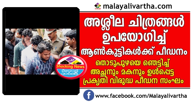 തൊടുപുഴക്കു സമീപം പ്രായപൂർത്തിയാകാത്ത രണ്ടു വിദ്യാർത്ഥികളെ പ്രകൃതി വിരുദ്ധ പീഡനത്തിന് ഇരയാക്കിയ പത്തു പേരെ പൊലീസ് അറസ്റ്റു ചെയ്തു. പ്രതികളിൽ അച്ഛനു മകനും. സ്ക്കൂളിലെ കൗൺസിലിംഗിലാണ് മൂന്നു വർഷമായി തുടർന്നു വന്ന പീഡനക്കഥ പുറത്തറിഞ്ഞത്.