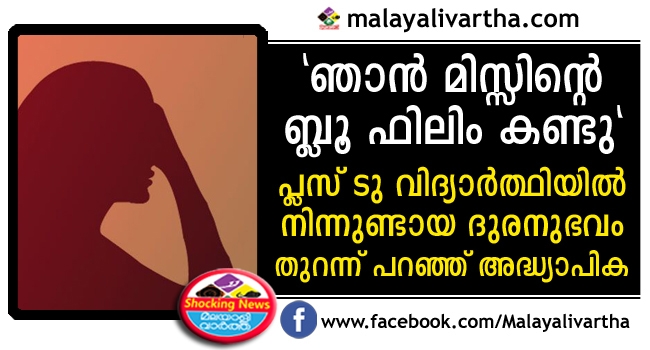 ‘ഞാന് മിസ്സിന്റെ ബ്ളൂ ഫിലിം കണ്ടു’ ഈ പ്ളസ് ടു വിദ്യാര്ത്ഥിയുടെ അമ്മ അതേ സ്കൂളില് പ്രിന്സിപ്പല് ആണ്. ഫേസ്ബുക്കില് ഞാന് പോസ്റ്റു ചെയ്ത പ്രൊഫൈല് പിക്ചര് ആരെങ്കിലും ദുരുപയോഗം ചെയ്തത് ആണോ എന്ന സംശയത്തില് ഞാന് അവനോട് കൂടുതല് ചോദ്യങ്ങള് ചോദിച്ചപ്പോള് അവന് പറയുന്നു, ‘ഞാന് തമാശ പറഞ്ഞതാണ് ടീച്ചറേ’