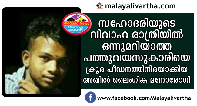 സഹോദരിയുടെ വിവാഹ രാത്രിയില് സഹോദരന്മാരും അമ്മാവനും ചേർന്ന് പത്ത് വയസ്സുകാരിയെ ക്രൂര ലൈംഗിക പീഡനത്തിനിരയാക്കി; ഭീഷണിപ്പെടുത്തി പീഡനം തുടർന്നത് മൂന്ന് വർഷം: കരുനാഗപ്പള്ളിയിലെ പീഡനവീരന് അഖിൽ ലൈംഗിക മനോരോഗിയെന്ന് നാട്ടുകാർ
