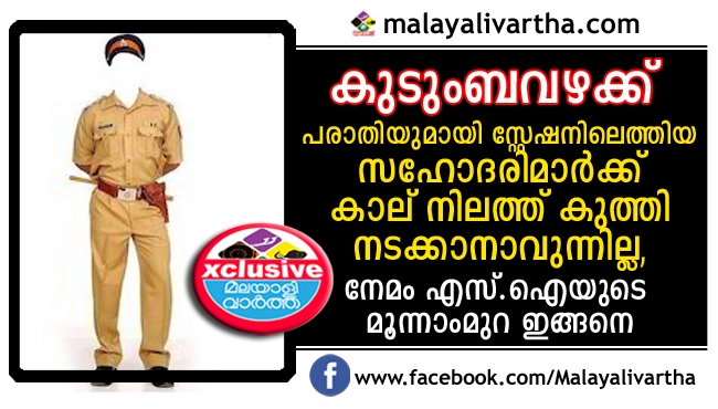 ആടിനെ പട്ടിയാക്കുകയും പട്ടിയെ പേപ്പട്ടിയാക്കുകയും ചെയ്യുന്ന കാട്ടാളന്മാരായി നമ്മുടെ പൊലീസ് മാറുന്നതിന്റെ അവസാനത്തെ കാഴ്ചയാണ് നേമം സ്റ്റേഷനില് നടന്നത്. സംഭവത്തെ കുറിച്ച് പരാതിക്കാരിയായ നേമം പുന്നമൂട് കല്ലിയൂര് ഇലക്ട്രിസിറ്റി ഓഫീസിന് സമീപം കൊല്ലവിളാകം വീട്ടില് മായ പറയും; ഞാനുമായുള്ള അഭിപ്രായവ്യത്യാസത്തെ തുടര്ന്ന് അനുജത്തി മഞ്ജു കഴിഞ്ഞയാഴ്ച വഴക്കുണ്ടാക്കി. ഇതിനിടെ മഞ്ജു കല്ലെടുത്തെറിഞ്ഞു. സംഭവം വഷളായി. നാട്ടുകാര് പൊലീസിനെ വിളിച്ചുവരുത്തി. നാട്ടുകാരും ബന്ധുക്കളും തനിക്ക് എതിരാണെന്ന് മനസിലാക്കിയ മഞ്ജു കയ്യിലെ ഞരമ്പ് മുറിച്ചു. ചെറിയ പോറല് മാത്രമേ ഉണ്ടായിരുന്നുള്ളൂ. സ്ഥലത്തെത്തിയ നേമം എസ്.ഐ മഞ്ജുവിനെ ആശുപത്രിയില് കൊണ്ടു പോകാന് അനുജനോട് നിര്ദ്ദേശിച്ചു. എന്നിട്ട് ഞങ്ങള് രണ്ട് പേരും സ്റ്റേഷനില് വരാന് പറഞ്ഞു. പക്ഷെ, അനുജത്തി ആശുപത്രിയില് പോകാന് കൂട്ടാക്കിയില്ല.
