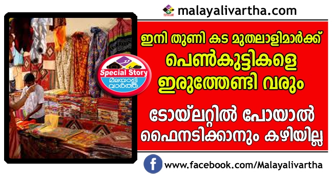 തുണികടകളിൽ ജീവനക്കാരായ പെൺകുട്ടികൾക്ക് ഇരിക്കാനുള്ള അവകാശം വരുന്നു. പാവപ്പെട്ട വീടുകളിലെ പെൺകുട്ടികളെ ഒരേ നിൽപ്പിൽ നിർത്തി പണമുണ്ടാക്കുന്ന വൻകിട വസ്ത്ര വില്പ്പനശാലകൾ ഇനി നിഴലിൽ മാത്രം. തുണി കടകളിൽ ജോലി ചെയ്യുന്ന നിസഹായരായ പെൺകുട്ടികൾക്ക് 'വിളി' വരുമ്പോഴെല്ലാം ഇനി ശുചി മുറിയിലും പോകാം. ഇതുവരെ ദിവസം രണ്ട് തവണ മാത്രമാണ് ശുചി മുറിയിൽ പോകാൻ അനുവാദം ഉണ്ടായിരുന്നത്. കൂടുതൽ പോയാൽ സി സി റ്റി വി കണ്ട് മുതലാളി ഫൈനടിക്കും.