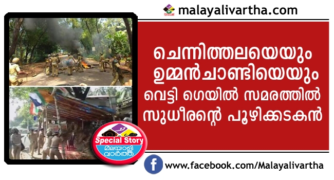 ഉമ്മന്ചാണ്ടിയുടെയും ചെന്നിത്തലയുടെയും സമ്മര്ദ്ദങ്ങള്ക്ക് വഴങ്ങാതെ സ്വയം കെ.പി.സി.സി പദവി ഒഴിഞ്ഞ സുധീരന് സോളാര് കമ്മിഷന് റിപ്പോര്ട്ടിനെ തുടര്ന്ന് സടകുടഞ്ഞ് എണീക്കാന് ശ്രമം നടത്തിയിരുന്നു. എന്നാല് എ, ഐ ഗ്രൂപ്പുകള് സംയുക്തമായി ഈ നീക്കത്തെ പ്രതിരോധിച്ചു. ഉമ്മന്ചാണ്ടി മുഖ്യമന്ത്രിയായിരിക്കെ അദ്ദേഹത്തിന്റെ ഓഫീസിന് വീഴ്ച വന്നെന്ന് സുധീരന് കെ.പി.സി.സി എക്സിക്യൂട്ടീവില് ആരോപിച്ചിരുന്നു. അതിന് പിന്നാലെ ചെന്നിത്തല യാത്ര നടത്തി പാര്്ട്ടിയിലും മുന്നണിയിലും തന്റെ അശ്വമേധം തുടരുമ്പോഴാണ് സുധീരന് ഗെയില് പിടിവള്ളിയായി കിട്ടിയത്. അതോടെ ആരെയും അറിയിക്കാതെ അദ്ദേഹം മുക്കത്തേക്ക് വണ്ടികയറുകയായിരുന്നു.