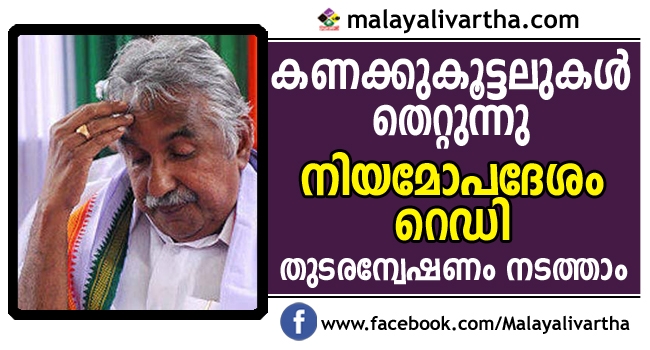സോളാര് കേസില് മുന് മുഖ്യമന്ത്രി ഉമ്മന് ചാണ്ടി ഉള്പ്പെടെയുള്ള യു.ഡി.എഫ് നേതാക്കള്ക്കെതിരെ തുടരന്വേഷണം ആകാമെന്ന് നിയമോപദേശം