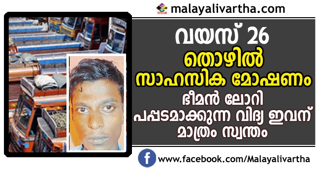 സാഹസികമായി വലിയ ചരക്കുവാഹനങ്ങള് ഉള്പ്പെടെ കടത്തിക്കൊണ്ടു പോകുന്നതില് സമര്ത്ഥനായ വാഹന മോഷ്ടാവ് പോലീസ് പിടിയില്