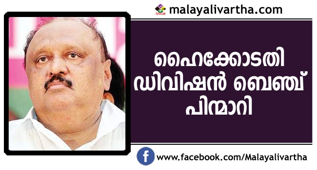 തോമസ് ചാണ്ടിക്കെതിരായ പൊതുതാല്പര്യ ഹര്ജി പരിഗണിക്കുന്നതില് നിന്ന് ഹൈക്കോടതിയുടെ ഡിവിഷന് ബെഞ്ച് പിന്മാറി