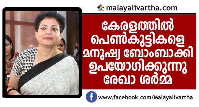 മലയാളി പെണ്കുട്ടികളെ മനുഷ്യ ബോംബായി വരെ ഉപയോഗിക്കുന്നുണ്ടെന്ന് ദേശീയ വനിതാ കമ്മീഷൻ അധ്യക്ഷ രേഖാ ശർമ്മ. പെണ്കുട്ടികളെ ഇത്തരത്തില് ദുരുപയോഗം ചെയ്യുന്നതിനെക്കുറിച്ച് ആശങ്കയുണ്ടെന്നും അവര് പറഞ്ഞു. പെൺകുട്ടികളെ നിർബന്ധിച്ച് മതം മാറ്റുന്നതിനൊപ്പം കേരളത്തില് മനുഷ്യക്കടത്തും നടക്കുന്നുണ്ടെന്ന് ദേശീയ വനിതാ കമ്മീഷൻ അധ്യക്ഷ ആരോപിച്ചു. മതംമാറ്റവുമായി ബന്ധപ്പെട്ട് ലഭിച്ച പതിനൊന്ന് പരാതികള് ഡിജിപിക്ക് കൈമാറിയെന്നും രേഖ ശര്മ തിരുവനന്തപുരത്ത് പറഞ്ഞു.