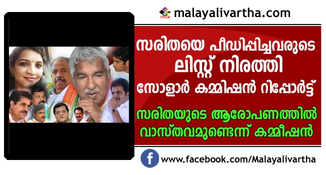 സരിതയുടെ ലൈംഗികാരോപണം വാസ്തവമെന്ന് കമ്മീഷൻ; സരിതയെ പീഡിപ്പിച്ചത് ഉമ്മൻ ചാണ്ടി, ജോസ് കെ.മാണി, ഹൈബി ഈഡൻ ഉൾപ്പെടെയുളളവരെന്ന് സോളാർ കമ്മിഷൻ കണ്ടെത്തൽ
