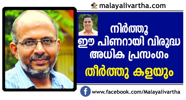 പിണറായി വിരോധം കൊണ്ട് ഭ്രാന്ത് പിടിച്ച വ്യക്തിയാണ് അഡ്വ. ജയശങ്കര്, എന്നാല് ജനങ്ങള് പിണറായിയെ മുഖ്യമന്ത്രിയാക്കി. അതിന് ശേഷം പിണറായിയെ രാജിവെപ്പിക്കുമെന്ന് പ്രഖ്യാപിച്ചു. എന്നാല് വക്കീല് വിചാരിച്ച പോലെയല്ല കാര്യങ്ങള്. അതില് നിന്നാണ് പിണറായിയെ വ്യക്തിപരമായി ആക്ഷേപിക്കാനും അധിക്ഷേപിക്കാനും അദ്ദേഹത്തെ പ്രേരിപ്പിക്കുന്നത്. ഇങ്ങനെ തുടര്ന്നാല് ഇതിന്റെ പ്രതിവിധി കൂടെ നേരിടാന് അദ്ദേഹം തയ്യാറാവണം.
