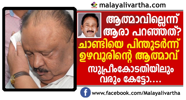 ആത്മാവും ദൈവവും ഇല്ലെന്ന് ആരാണ് പറഞ്ഞത്? ഹൈക്കോ തി വിധിക്കെതിരെ സുപ്രീം കോടതിയെ സമീപിക്കാൻ ഒരുങ്ങുന്ന തോമസ് ചാണ്ടിയെ അവിടെയും ഒരാളുടെ ആത്മാവ് പിന്തുടരും. അത് സാക്ഷാൽ ഉഴവൂർ വിജയന്റെ ആത്മാവാണ്. മന്ത്രി തോമസ് ചാണ്ടിയെ ഇതുവരെ വീഴ്ത്തിയത് സാക്ഷാൽ ഉഴവൂർ വിജയന്റെ ആത്മാവാണ്. കാരണം ഉഴവൂർ വിജയന്റെ അകാല ചരമത്തിന് കാരണമായത് തോമസ് ചാണ്ടിയുടെ ഇടപെടലുകളാണ്.