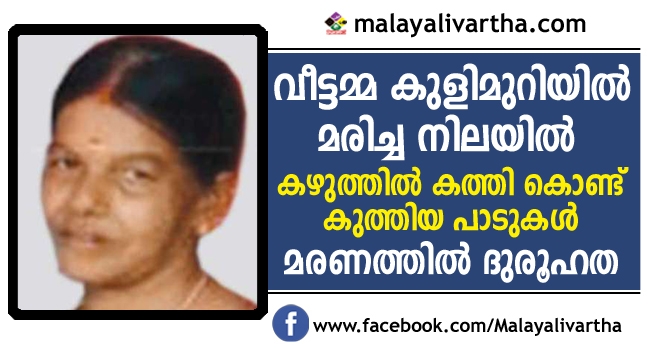 വീട്ടമ്മ കുളിമുറിയില് മരിച്ച നിലയില്, മറുനാടന് തൊഴിലാളികളാണ് മരണത്തിന് പിന്നിലെന്ന് സൂചന, കഴുത്തില് കത്തി കൊണ്ട് കുത്തിയ പാടുകള്, മരണത്തില് ദുരൂഹത
