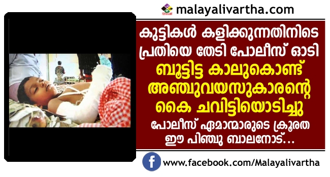 പ്രതിയെ പിടിക്കാന് പരക്കംപാഞ്ഞ പോലീസ് അഞ്ചുവയസുകാരന്റെ കൈ ചവിട്ടിയൊടിച്ചു; സംഭവം കണ്ണൂരിൽ