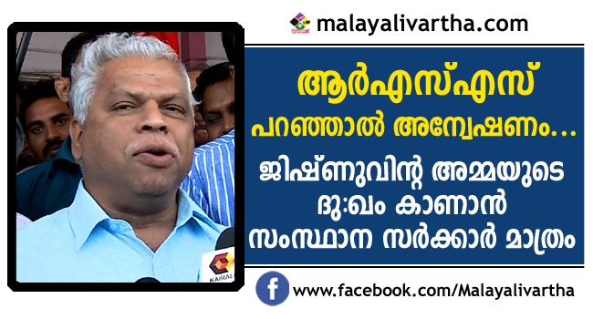 അന്വേഷണം ഏറ്റെടുത്തതിൽ കുറ്റമറ്റ അന്വേഷണവുമില്ല. അപ്പോഴാണ് കേരള ഹൈക്കോടതിയില് ആര്എസ്എസ് സ്ഥാപനമായ തലശ്ശേരി ഗോപാലന് അടിയോടി സ്മാരക ട്രസ്റ്റ് 7 കേസുകള് സിബിഐ ഏറ്റെടുക്കണമെന്നാവശ്പ്പെട്ട് റിട്ട് പെറ്റീഷന് സമര്പ്പിച്ചത്. അതില് കൂട്ടിലടച്ച തത്തയെ പോലെ കേസുകള് ഏറ്റെടുക്കാന് സിബിഐ സന്നദ്ധത കോടതിയില് അറിയിച്ചത്. അതാണ് രാഷ്ട്രീയം. ആര്എസ്എസ് പറഞ്ഞാല് അന്വേഷണം. ജിഷ്ണുവിന്റ അമ്മ മഹിജയുടെ ദുഖം കാണാന് സംസ്ഥാന സര്ക്കാര് മാത്രം- ജയരാജൻ പറഞ്ഞു.