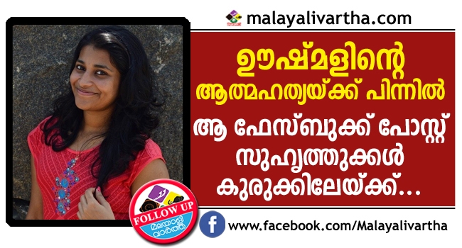 എം.ബി.ബി.എസ് നാലാം വര്ഷ വിദ്യാര്ഥിനി ഊഷ്മളിന്റെ ആത്മഹത്യക്ക് പിന്നിൽ അപകീര്ത്തികരമായ ഫെയ്സ്ബുക്ക് പോസ്റ്റ്...