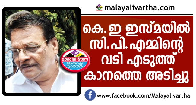 സി.പി.ഐയെ അടിക്കാന് സി.പി.എം ചീകി മിനുക്കിവെച്ച ചൂരലെടുത്ത് കെ.ഇസ് ഇസ്മയില് പാര്ട്ടി സംസ്ഥാന സെക്രട്ടറി കാനം രാജേന്ദ്രനെ അടിച്ചു. മന്ത്രി തോമസ് ചാണ്ടിയുടെ രാജി വൈകിയില്ലെന്നും മന്ത്രിസഭാ യോഗത്തില് നിന്നും മന്ത്രിമാര് വിട്ടു നിന്നത് ശരിയായില്ലെന്നും ഇസ്മയില് തുറന്നടിച്ചത് കാനത്തിനേറ്റ കനത്ത പ്രഹരമാണ്. ഗ്രൂപ്പ് പോരില് ഇസ്മയിലിനെ മലര്ത്തിയടിച്ച് അജയ്യനായി വാഴുന്ന കാനത്തിന് പണി കൊടുക്കാന് പതുങ്ങിയിരിക്കുകയായിരുന്നു ഇസ്മയില്. അതിനിടെയാണ് തോമസ് ചാണ്ടിയുടെ രാജി വിവാദവും അതിനെ ചൊല്ലി സി.പി.എമ്മുമായി തര്ക്കവും ഉണ്ടായത്. തോമസ് ചാണ്ടിയുടെ റിസോര്ട്ടിലേക്കുള്ള സീറോ ജെട്ടി റോഡ് ടാര് ചെയ്യാന് താന് എം.പി ഫണ്ട് അനുവദിച്ചത് പാര്ട്ടി സംസ്ഥാന കൗണ്സില് നിര്ദ്ദേശപ്രകാരമാണെന്ന് ഇസ്മയില് എഫ്.ബി പോസ്റ്റും ഇട്ടതോടെ പാളയത്തില് പടയായി.