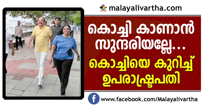 ഉപരാഷ്ട്രപതിയ്ക്ക് കൊച്ചി ഇഷ്ടമായി... പ്രോട്ടോക്കോള് ഇല്ലായിരുന്നെങ്കില് ഞാന് ഇവിടെ മുഴുവന് കണ്ടിട്ടേ തിരിച്ചുപോകുമായിരുന്നുള്ളൂ. എന്തുചെയ്യാം ഉപരാഷ്ട്രപതിയായിപ്പോയില്ലേ?'...കൊച്ചി കണ്ട് ഉപരാഷ്ട്രപതി വെങ്കയ്യ നായിഡു