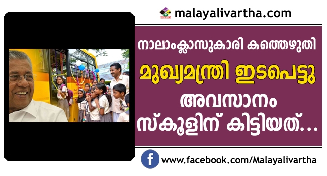 നാലാം ക്ലാസുകാരി മുഖ്യമന്ത്രിക്ക് കത്തെഴുതി; സ്കൂളിന് ലഭിച്ചത്...