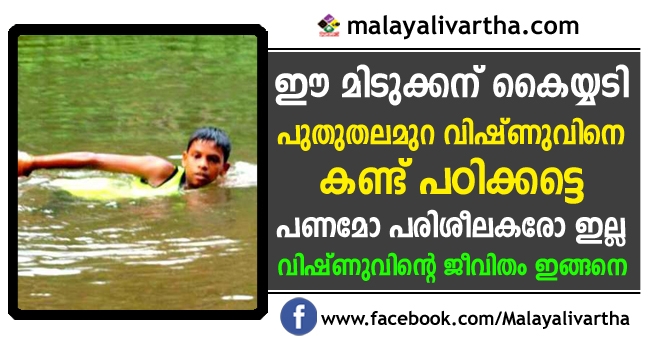 വിഷ്ണു എന്ന പതിനാലുകാരന് ഇന്നത്തെ തലമുറയ്ക്ക് പ്രചോദനം തന്നെയാണ്. പണത്തിന്റെയോ പരിശീലകരുടെയോ പിന്ബലമില്ലാതെയാണ് വിഷ്ണുവിന്റെ വിജയം തേടി പിടിക്കാനുള്ള യാത്ര.