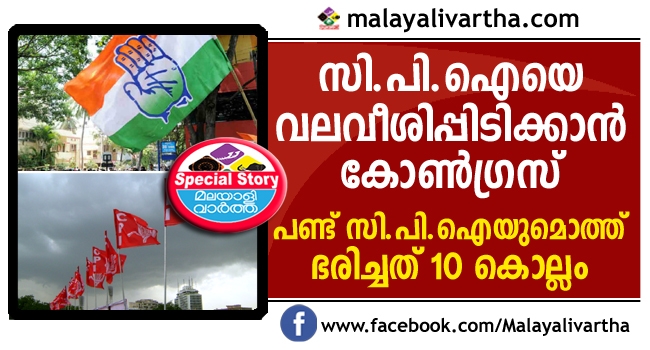സി.പി.എം- സി.പി.ഐ പോരിന് പിന്നാലെ സി.പി.ഐയെ ചാക്കിട്ട് പിടിച്ച് യു.ഡി.എഫിലെത്തിക്കാന് കോണ്ഗ്രസ് ശ്രമം തുടങ്ങി. സി.പി.ഐയുടെ പോഷക സംഘടനയായ റവന്യൂ ഡിപ്പാര്ട്ട്മെന്റ് സ്റ്റാഫ് അസോസിയേഷന്റെ സമ്മേളന വേദിയില് വെച്ചാണ് കോണ്ഗ്രസ് നേതാവ് തിരുവഞ്ചൂര് രാധാകൃഷ്ണന് പരസ്യമായി തങ്ങളുടെ പഴയ ഘടകക്ഷിയായ സി.പി.ഐയെ ക്ഷണിച്ചത്. സി.പി.ഐയെ മുന്നണിയിലെത്തിച്ചാല് തങ്ങള്ക്ക് ഏറെ ഗുണമാണെന്ന് കോണ്ഗ്രസിനറിയാം. പണ്ട് സി.പി.എമ്മുമായുള്ള സഖ്യം അവസാനിപ്പിച്ച് സി.പി.ഐ കോണ്ഗ്രസ് പാളയത്തില് എത്തിയപ്പോള് 10 വര്ഷം അധികാരമില്ലാതെ സി.പി.എമ്മിന് കഴിയേണ്ടിവന്നു. പിന്നീട് സി.പി.ഐയുമായി ചേര്ന്ന് തെരഞ്ഞെടുപ്പില് മല്സരിച്ച് വിജയിച്ചാണ് അധികാരത്തിലെത്തിയത്.