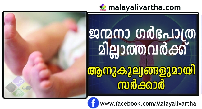 ജന്മനാ ഗര്ഭപാത്രമില്ലാത്ത സ്ത്രീകള്ക്ക് എല്ലാ ആനുകൂല്യങ്ങളും നല്കാന് സര്ക്കാര് തീരുമാനം