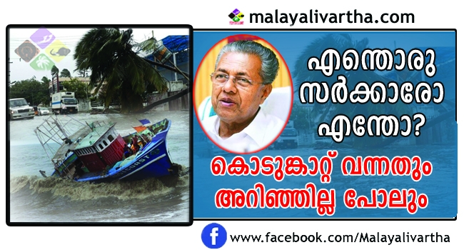 ഓഖി ചുഴലിക്കാറ്റ് വരുന്നുണ്ടെന്ന വിവരം പോലും അറിയാനാവാത്ത തരത്തിൽ സർക്കാർ പൂർണ്ണ പരാജയം.