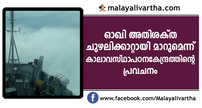 ഒാഖി അടുത്ത 24 മണിക്കൂറിനുള്ളില് കൂടുതല് ശക്തിപ്രാപിക്കുമെന്ന് കാലാവസ്ഥാപഠനകേന്ദ്രം ; അടുത്ത 24 മണിക്കൂറില് കേരളത്തിലും ലക്ഷദ്വീപിലും ശക്തമായ മഴയ്ക്ക് സാധ്യത