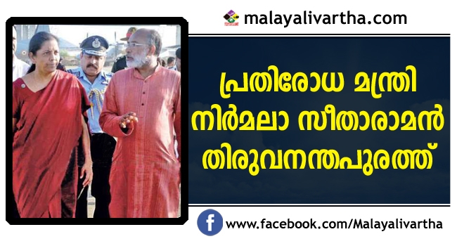 ദുരിത ബാധിത പ്രദേശങ്ങള് സന്ദര്ശിക്കാൻ പ്രതിരോധ മന്ത്രി നിര്മലാ സീതാരാമന് തിരുവനന്തപുരത്ത് ; മുഖ്യമന്ത്രിയുമായി കൂടിക്കാഴ്ച നടത്തും