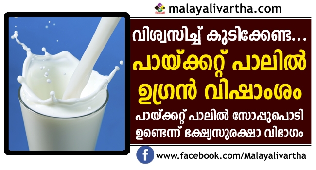 പായ്ക്കറ്റ് പാലില് ഉഗ്രന് വിഷാംശം, പായ്ക്കറ്റ് പാലില് പാല്പ്പൊടി മുതല് സോപ്പുപൊടി വരെ ചേര്ക്കുന്നതായി ഭക്ഷ്യസുരക്ഷാ വിഭാഗം