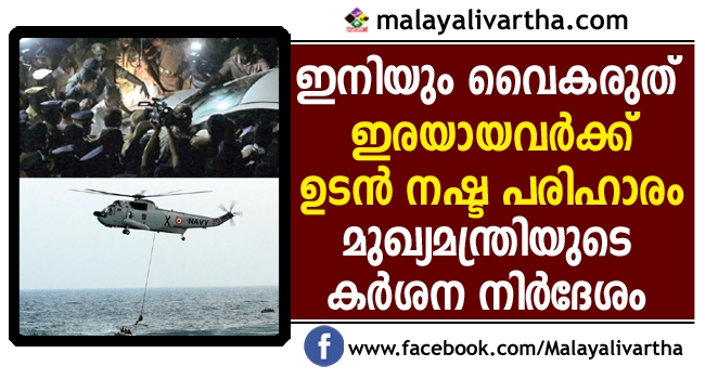ഓഖി ചുഴലിക്കാറ്റ് ദുരന്തത്തിന് ഇരയായവര്ക്ക് വേഗതത്തില് നഷ്ടപരിഹാരം എത്തിക്കാന് മുഖ്യമന്ത്രി പിണറായി വിജയന്റെ നിര്ദേശം. ജില്ലാ കളക്ടര്മാര്ക്കാണ് ഇത് സംബദ്ധമായ നിര്ദേശം മുഖ്യമന്ത്രി നല്കിയത്.