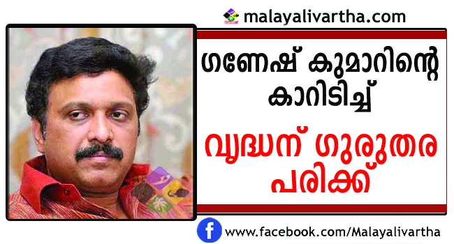 ഗണേഷ് കുമാറിന്റെ കാറിടിച്ച് വൃദ്ധന് ഗുരുതര പരിക്ക്. ചേര്ത്തല സ്വദേശി തങ്കപ്പനാണ് (68) പരുക്കേറ്റത്