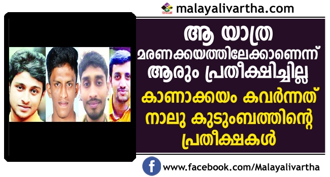 ഉറ്റവരുടെ നിലവിളിയ്ക്ക് മുന്നിൽ നിശ്ചലരായി നാട്ടുകാരും ബന്ധുക്കളും; യുവാക്കൾ കാണാക്കയത്തിലേക്ക് മറഞ്ഞപ്പോൾ അസ്തമിച്ചത് നാലു കുടുംബത്തിന്റെ പ്രതീക്ഷകള്
