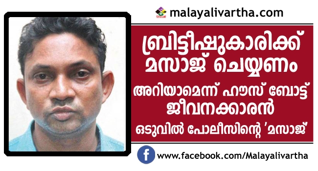 ഹൗസ് ബോട്ടില് ബ്രിട്ടീഷ് യുവതിയെ മസാജ് ചെയ്യാന് ശ്രമിക്കുന്നതിനിടെ പീഡന ശ്രമം